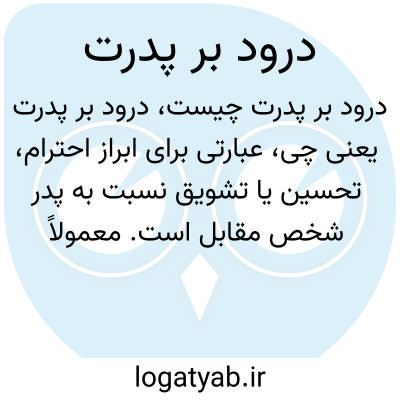 عبارتی برای ابراز احترام، تحسین یا تشویق نسبت به پدر شخص مقابل است. معمولاً وقتی کسی کاری خوب انجام دهد، این جمله بیان میشود تا قدرشناسی و احترام خود را توسط سخن گفتن از مقام پدر ابراز کند.