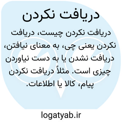 به معنای نیافتن، دریافت نشدن یا به دست نیاوردن چیزی است. مثلاً دریافت نکردن پیام، کالا یا اطلاعات.