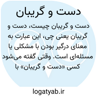 این عبارت به معنای درگیر بودن با مشکلی یا مسئله‌ای است. وقتی گفته می‌شود کسی «دست و گریبان» با کاری یا مشکلی است، یعنی تمام تلاش و انرژی خود را برای مقابله با آن به کار گرفته است.