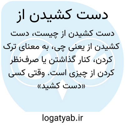 به معنای ترک کردن، کنار گذاشتن یا صرف‌نظر کردن از چیزی است. وقتی کسی «دست کشید» یعنی تصمیم گرفت دیگر ادامه ندهد یا آن موضوع را رها کند.