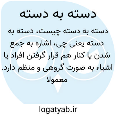 اشاره به جمع شدن یا کنار هم قرار گرفتن افراد یا اشیاء به صورت گروهی و منظم دارد. معمولا برای توصیف نظم و ترتیب در کنار هم قرار گرفتن اشیاء یا افراد به کار میرود.