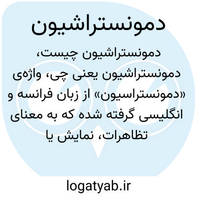 واژهی «دمونستراسیون» از زبان فرانسه و انگلیسی گرفته شده که به معنای تظاهرات، نمایش یا نشان دادن چیزی است. «دمونستراشیون» همان «تظاهرات» یا «نمایش» است که برای احتجاجات جمعی و یا نمایش مفهومی به کار میرود.