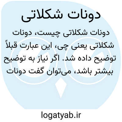 این عبارت قبلاً توضیح داده شد. اگر نیاز به توضیح بیشتر باشد، میتوان گفت دونات شکلاتی نوعی شیرینی سرخ شده در شکل حلقه است که با کرم یا روکش شکلاتی پوشانده میشود و یکی از محبوبترین خوراکیها در جهان محسوب میشود.