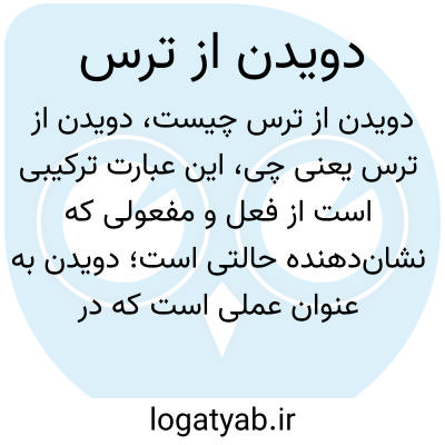 این عبارت ترکیبی است از فعل و مفعولی که نشان‌دهنده حالتی است؛ دویدن به عنوان عملی است که در واکنش به احساس ترس یا وحشت انجام می‌شود. فرد وقتی مورد تهدید یا ترس قرار می‌گیرد، ممکن است برای نجات خود به سرعت بدود تا از موقعیت خطرناک یا تهدیدآمیز دور شود. این واکنش طبیعی بدن به استرس و خطر است که به عنوان یکی از رفتارهای دفاعی شناخته می‌شود.