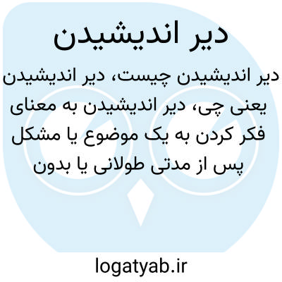 دیر اندیشیدن به معنای فکر کردن به یک موضوع یا مشکل پس از مدتی طولانی یا بدون فوریت است. این نوع تفکر گاهی می‌تواند به معنی تأمل دقیق و عمیق باشد، اما در برخی موارد به معنای تأخیر در تصمیم‌گیری نیز به کار می‌رود.