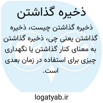 ذخیره گذاشتن به معنای کنار گذاشتن یا نگهداری چیزی برای استفاده در زمان بعدی است. معمولاً در مورد پول، مواد غذایی، یا اشیاء با ارزش به کار می‌رود که فرد یا سازمان به منظور اطمینان از داشتن منابع لازم در آینده آن‌ها را ذخیره می‌کند.