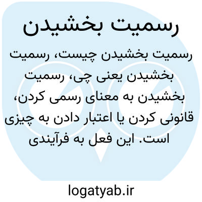 رسمیت بخشیدن به معنای رسمی کردن، قانونی کردن یا اعتبار دادن به چیزی است. این فعل به فرآیندی اشاره دارد که طی آن یک امر، پدیده یا فعالیت از حالت غیررسمی به حالت رسمی و پذیرفته شده تبدیل می‌شود.
