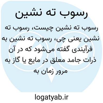 رسوب ته نشین به فرآیندی گفته میشود که در آن ذرات جامد معلق در مایع یا گاز به مرور زمان به دلیل وزن خود بر روی سطح یا کف ظرف جمع میشوند. این پدیده در علوم زمین، شیمی و محیط زیست اهمیت زیادی دارد و موجب شکلگیری سنگها یا رسوبات میشود.