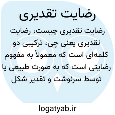 ترکیبی دو کلمه‌ای است که معمولاً به مفهوم رضایتی است که به صورت طبیعی یا توسط سرنوشت و تقدیر شکل گرفته باشد؛ رضایت یعنی خوشنودی و تقدیری به معنای مربوط به تقدیر یا سرنوشت است.