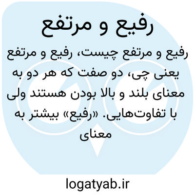 دو صفت که هر دو به معنای بلند و بالا بودن هستند ولی با تفاوت‌هایی. «رفیع» بیشتر به معنای والا، بلندمرتبه یا از نظر درجه و مقام بالاست، و «مرتفع» به معنی جغرافیایی بلند، مرتفع و بلندقامت اشاره دارد.