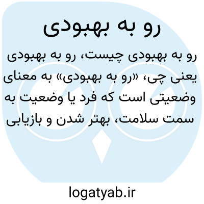 «رو به بهبودی» به معنای وضعیتی است که فرد یا وضعیت به سمت سلامت، بهتر شدن و بازیابی نیرو و توان قبلی در حرکت است. این عبارت بیشتر در زمینه بیماری، آسیب یا شرایط ناگوار جسمی و روانی به کار می‌رود و نشان‌دهنده روند مثبت و بهبود شرایط است.