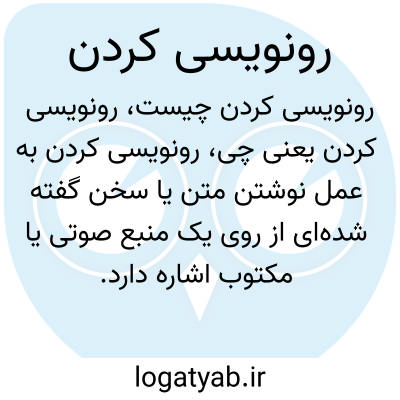 رونویسی کردن به عمل نوشتن متن یا سخن گفته شده‌ای از روی یک منبع صوتی یا مکتوب اشاره دارد. این فعالیت می‌تواند در زمینه‌های آموزشی، پژوهشی، حقوقی و سایر حوزه‌ها برای مستندسازی و یا انتشار اطلاعات به کار رود.