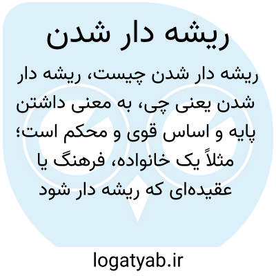 به معنی داشتن پایه و اساس قوی و محکم است؛ مثلاً یک خانواده، فرهنگ یا عقیدهای که ریشه دار شود یعنی عمق و سابقه تاریخی و استحکام زیادی دارد.