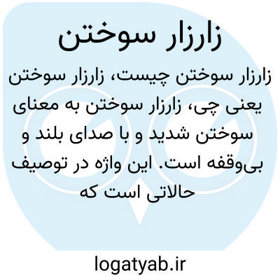 زارزار سوختن به معنای سوختن شدید و با صدای بلند و بیوقفه است. این واژه در توصیف حالاتی است که چیزی به شدت میسوزد و صدای خاصی تولید میکند، مثل زارزار گریه کردن یا سوختن.