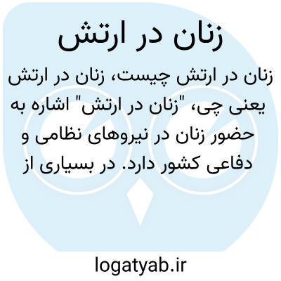 "زنان در ارتش" اشاره به حضور زنان در نیروهای نظامی و دفاعی کشور دارد. در بسیاری از کشورها، زنان به عنوان سرباز، افسر، پزشک نظامی و در سایر نقشها فعالیت میکنند و سهم قابل توجهی در ارتقاء توان دفاعی و امنیتی دارند. ورود زنان به ارتش نشاندهنده تغییر نگرشها نسبت به نقش جنسیتی و توانمندیهای آنان است.