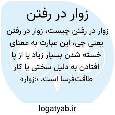 این عبارت به معنای خسته شدن بسیار زیاد یا از پا افتادن به دلیل سختی یا کار طاقت‌فرسا است. «زوار» اشاره به استخوان‌های باریک و بلند بدن دارد و «در رفتن زوار کسی» یعنی استخوان‌های او خمیده یا شکسته‌اند به خاطر شدت خستگی.