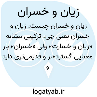 ترکیبی مشابه «زیان و خسارت» ولی «خسران» بار معنایی گسترده‌تر و قدیمی‌تری دارد و می‌تواند به از دست دادن کلی، نقصان یا تباهی اشاره کند. این عبارت غالباً در متون ادبی و دینی به کار می‌رود.