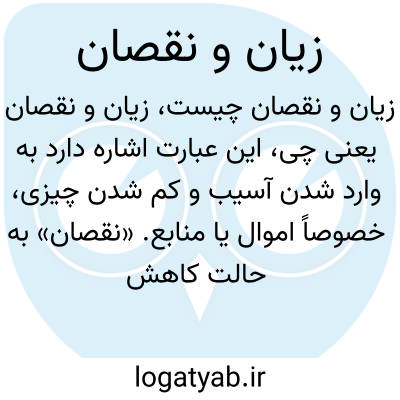 این عبارت اشاره دارد به وارد شدن آسیب و کم شدن چیزی، خصوصاً اموال یا منابع. «نقصان» به حالت کاهش یا کمبود اشاره دارد و «زیان» بر ضرر مادی یا معنوی دلالت می‌کند.