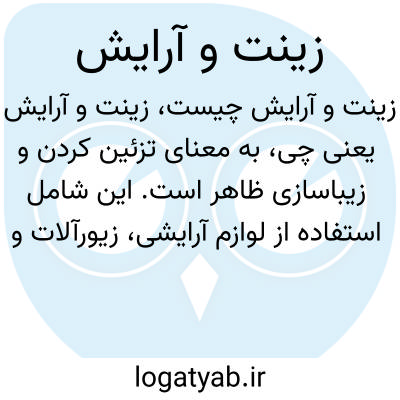 به معنای تزئین کردن و زیباسازی ظاهر است. این شامل استفاده از لوازم آرایشی، زیورآلات و شیوه‌های مختلف برای بهبود نمای ظاهری یک شخص یا مکان می‌شود.
