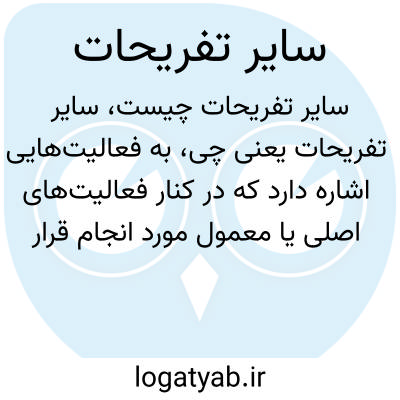 به فعالیتهایی اشاره دارد که در کنار فعالیتهای اصلی یا معمول مورد انجام قرار میگیرد و به منظور سرگرمی و استراحت انجام میشود. "سایر تفریحات" شامل بازیها، ورزشها، گردشگری و فعالیتهای هنری میشود که از تنوع بسیار برخوردار است.