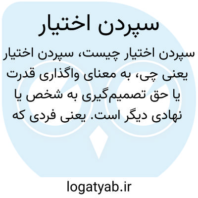 به معنای واگذاری قدرت یا حق تصمیم‌گیری به شخص یا نهادی دیگر است. یعنی فردی که اختیار و مسئولیتی دارد، آن را به دیگری منتقل می‌کند تا او در امور معین تصمیم‌گیری و عمل نماید. این عمل در مدیریت، قضا و امور روزمره کاربرد گسترده دارد.