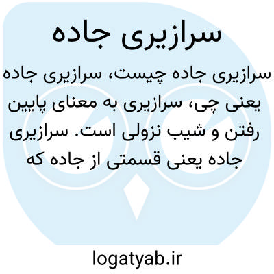 سرازیری به معنای پایین رفتن و شیب نزولی است. سرازیری جاده یعنی قسمتی از جاده که سراشیب بوده و مسیر پایین آمدن را نشان می‌دهد. این واژه معمولاً در توصیف جغرافیایی مسیرها به کار می‌رود.