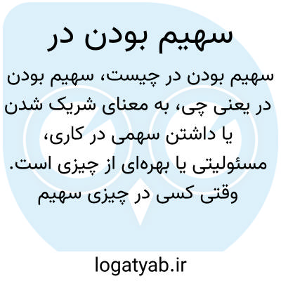 به معنای شریک شدن یا داشتن سهمی در کاری، مسئولیتی یا بهرهای از چیزی است. وقتی کسی در چیزی سهیم باشد، یعنی هم در سود، وظیفه یا نتیجه آن نقش دارد.