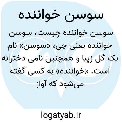 «سوسن» نام یک گل زیبا و همچنین نامی دخترانه است. «خواننده» به کسی گفته میشود که آواز میخواند. ترکیب «سوسن خواننده» ممکن است اشاره به کسی باشد که نامش سوسن است و خواننده است، یا استعارهای برای خوانندهای لطیف و خوشآوا همچون گل سوسن.