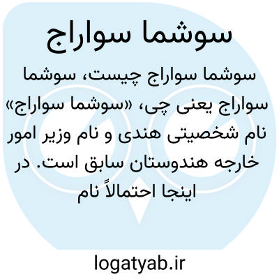 «سوشما سواراج» نام شخصیتی هندی و نام وزیر امور خارجه هندوستان سابق است. در اینجا احتمالاً نام یک فرد است که به عنوان یک چهره سیاسی شناخته می‌شود.