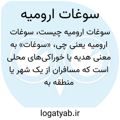 «سوغات» به معنی هدیه یا خوراکی‌های محلی است که مسافران از یک شهر یا منطقه به عنوان یادگاری می‌برند. «ارومیه» شهری در شمال غرب ایران است. بنابراین «سوغات ارومیه» به خوراکی‌ها یا صنایع دستی مخصوص ارومیه اشاره دارد، مانند «حلواشکری»، «ریواس خشک»، «رشته‌خاتون» یا «نبات».