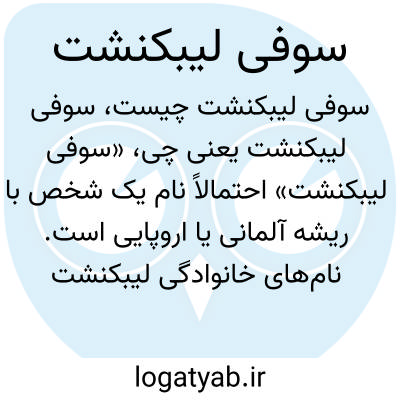 «سوفی لیبکنشت» احتمالاً نام یک شخص با ریشه آلمانی یا اروپایی است. نامهای خانوادگی لیبکنشت در تاریخ آلمان شناخته شدهاند ولی این ترکیب کلمه به کلمه فارسی معناداری ندارد، بنابراین در اینجا به عنوان نام خاص وارد شده است.