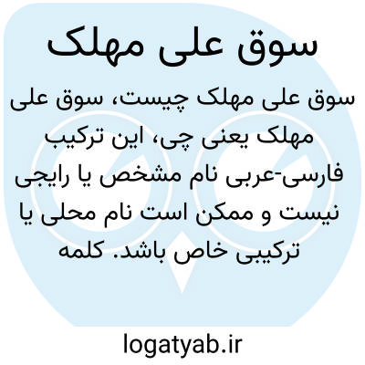 این ترکیب فارسی-عربی نام مشخص یا رایجی نیست و ممکن است نام محلی یا ترکیبی خاص باشد. کلمه «مهلک» در عربی به معنی مهلک، کشنده است که ترکیب با سوق و علی به صورت واضح معنای مشخصی نمی‌دهد. احتمالاً نام خاص است و کاربرد عمومی ندارد.
