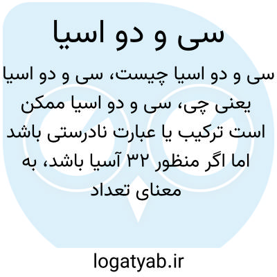سی و دو اسیا ممکن است ترکیب یا عبارت نادرستی باشد اما اگر منظور ۳۲ آسیا باشد، به معنای تعداد کشورها یا مناطق آسیا است. بهطور کلی رسیدن به مفهوم دقیق از متن موجود مشکل است.