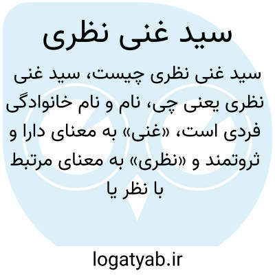 نام و نام خانوادگی فردی است، «غنی» به معنای دارا و ثروتمند و «نظری» به معنای مرتبط با نظر یا فکر و اندیشه است، که معمولاً به عنوان نام خانوادگی کاربرد دارد.