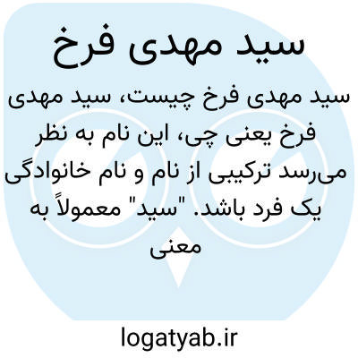 این نام به نظر می‌رسد ترکیبی از نام و نام خانوادگی یک فرد باشد. "سید" معمولاً به معنی نسبتی با پیامبر اسلام دارد و نشان‌دهنده جایگاه مذهبی است. "مهدی" نامی مذهبی و محبوب در فرهنگ ایرانی است و "فرخ" به معنای خوشبخت و سعادت‌مند است. احتمالاً فردی با این نام است اما اطلاعات بیشتری نیاز است.