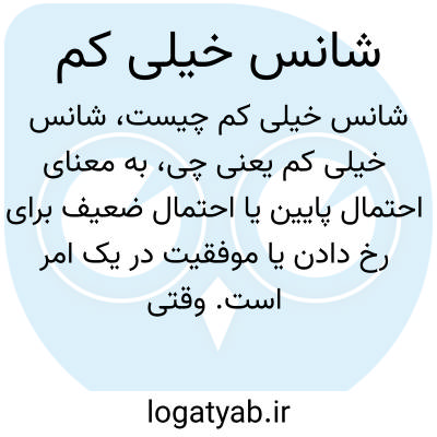 به معنای احتمال پایین یا احتمال ضعیف برای رخ دادن یا موفقیت در یک امر است. وقتی میگوییم «شانس خیلی کم» یعنی احتمال موفقیت یا وقوع بسیار پایین در نظر گرفته میشود.
