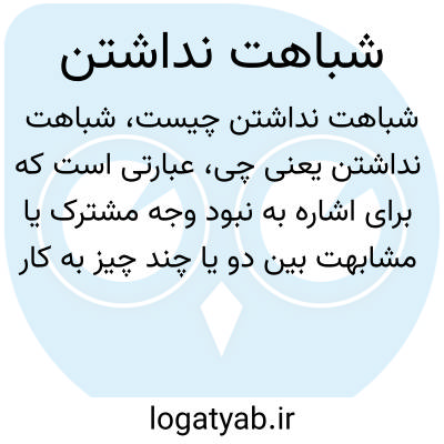 عبارتی است که برای اشاره به نبود وجه مشترک یا مشابهت بین دو یا چند چیز به کار میرود. وقتی دو چیز شباهتی ندارند، یعنی ویژگیهای آنها متفاوت است و نمیتوان آنها را شبیه به هم دانست.