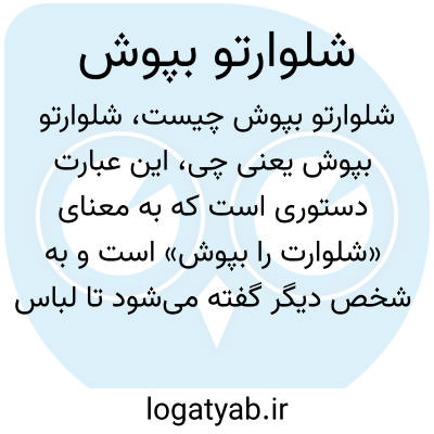این عبارت دستوری است که به معنای «شلوارت را بپوش» است و به شخص دیگر گفته میشود تا لباس شلوار خود را بپوشد. معمولا برای تاکید بر پوشیدن شلوار توسط فرد استفاده میشود، ممکن است در موقعیتهای روزمره یا شوخی به کار رود.