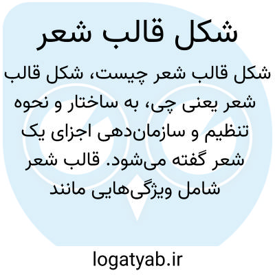 به ساختار و نحوه تنظیم و سازماندهی اجزای یک شعر گفته میشود. قالب شعر شامل ویژگیهایی مانند وزن، قافیه، تعداد مصرعها، آرایش عروضی و نوع ترکیب کلمات در شعر است که به آن شکل و قالب مشخص میبخشد. قالبهای مختلفی مانند مثنوی، چهارپاره، رباعی، غزل و غیره وجود دارد.
