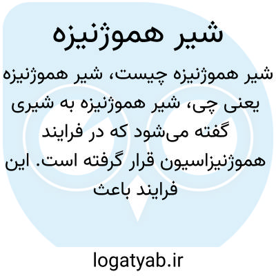 شیر هموژنیزه به شیری گفته می‌شود که در فرایند هموژنیزاسیون قرار گرفته است. این فرایند باعث می‌شود که چربی شیر به قطعات بسیار ریز شکسته شده و به صورت یکنواخت در شیر پراکنده شود، که از جدا شدن چربی جلوگیری می‌کند.