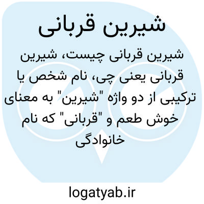 نام شخص یا ترکیبی از دو واژه "شیرین" به معنای خوش طعم و "قربانی" که نام خانوادگی یا عنوانی است. میتواند به شخصی با چنین نامی اشاره کند یا بیانگر ترکیب اسمی باشد.