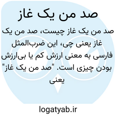 این ضربالمثل فارسی به معنی ارزش کم یا بیارزش بودن چیزی است. "صد من یک غاز" یعنی هرچه تعداد یا مقدارش زیاد باشد، ارزش یا فایدهای ندارد.