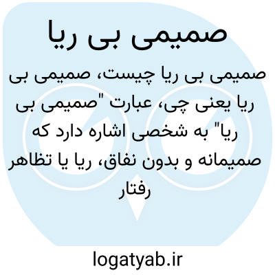 عبارت "صمیمی بی ریا" به شخصی اشاره دارد که صمیمانه و بدون نفاق، ریا یا تظاهر رفتار می‌کند. چنین فردی صادق، مهربان و با نیت خالص است که در روابط خود صراحت و صداقت دارد و بدون خودنمایی با دیگران برخورد می‌کند.