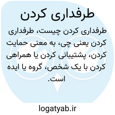 به معنی حمایت کردن، پشتیبانی کردن یا همراهی کردن با یک شخص، گروه یا ایده است. طرفداری کردن معمولاً در موقعیت‌هایی مثل ورزش، سیاست یا هنر مطرح می‌شود.