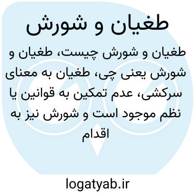 طغیان به معنای سرکشی، عدم تمکین به قوانین یا نظم موجود است و شورش نیز به اقدام جمعی برای مخالفت یا مقابله با حکومت یا قدرت حاکم گفته می‌شود. هر دو مفهوم با خشونت یا اعتراض نمایان می‌شوند.