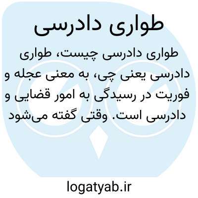 به معنی عجله و فوریت در رسیدگی به امور قضایی و دادرسی است. وقتی گفته می‌شود "طواری دادرسی"، به سرعت و بدون تأخیر رسیدگی قانونی و برگزاری دادگاه‌ها اشاره دارد.