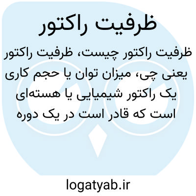 میزان توان یا حجم کاری یک راکتور شیمیایی یا هسته‌ای است که قادر است در یک دوره زمانی مشخص انجام دهد، این ظرفیت می‌تواند شامل پارامترهایی مانند دما، فشار، حجم مواد ورودی و خروجی باشد که محدودیت‌های عملی و ایمنی سیستم را نشان می‌دهد.