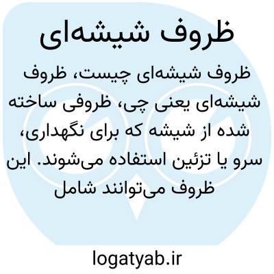 ظروفی ساخته شده از شیشه که برای نگهداری، سرو یا تزئین استفاده می‌شوند. این ظروف می‌توانند شامل انواع مختلفی مثل لیوان، بشقاب، پیاله، بطری و گلدان باشند. ظروف شیشه‌ای به دلیل شفافت و قدرت شکل‌پذیری در صنایع مختلف کاربرد فراوانی دارند.