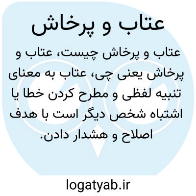 عتاب به معنای تنبیه لفظی و مطرح کردن خطا یا اشتباه شخص دیگر است با هدف اصلاح و هشدار دادن. پرخاش به حالت تهاجمی و خشمگینانه در گفتگو اشاره دارد که معمولاً بار منفی داشته و به تقابل یا برخورد شدید اطلاق میشود.