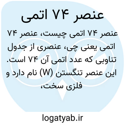 عنصری از جدول تناوبی که عدد اتمی آن ۷۴ است. این عنصر تنگستن (W) نام دارد و فلزی سخت، مقاوم در برابر حرارت بسیار بالا و در صنایع مختلف مانند تولید فولاد و لامپ‌های رشته‌ای کاربرد دارد.